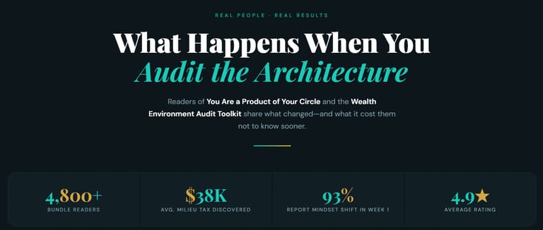 The Hidden Cost Bundle combines the core framework book YOU ARE A PRODUCT OF YOUR CIRCLE with the practical Wealth Environment Audit Toolkit so you can do two things: